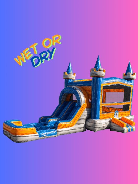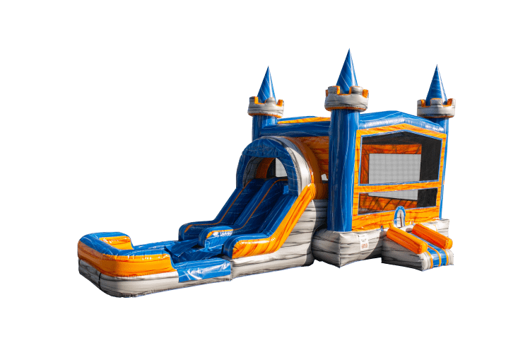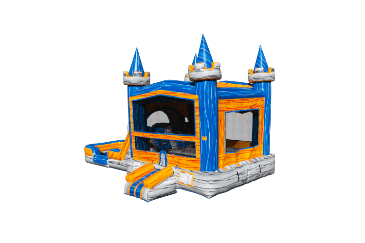 is a perfect unit to use inside or outside, and has a flashy design that’s sure to draw a crowd! Our Castle Combo Inflatable is built for those who want to have the WOW factor at any event. Featuring a large bouncer area, basketball hoop and slide to provide hours of fun. The unit was designed with mesh sides all around to have full visibility for parents and spectators.