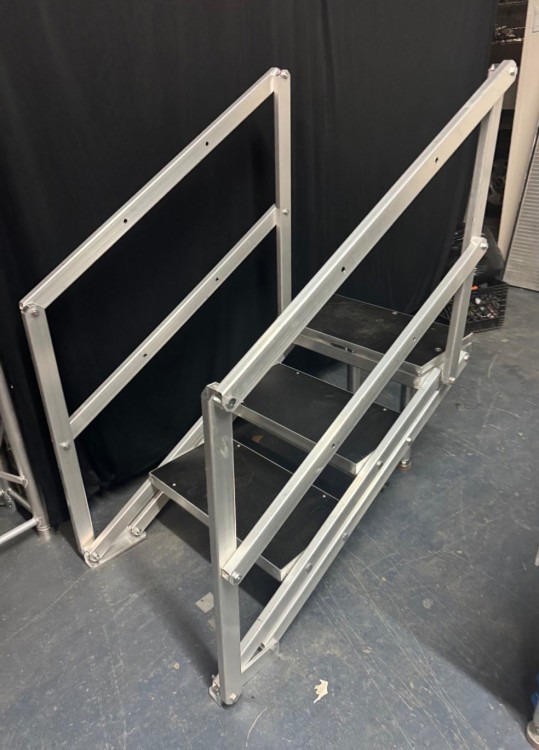 Sturdy stairs with handrails — a safe, reliable way to access raised platforms, stages, or inflatables. These portable steps are designed for temporary event use, offering a solid walking surface and supportive handrails on both sides to help guests climb and descend with confidence. Ideal for concerts, weddings, trade shows, backyard parties, or any rental that requires easy, accessible entry to elevated areas. Built for frequent setup and takedown, they provide stability, clear footing, and extra peace of mind for children, seniors, and anyone who prefers added support. Simple to position and compatible with most event layouts, these stairs make access safer and smoother without changing the look or flow of your space.