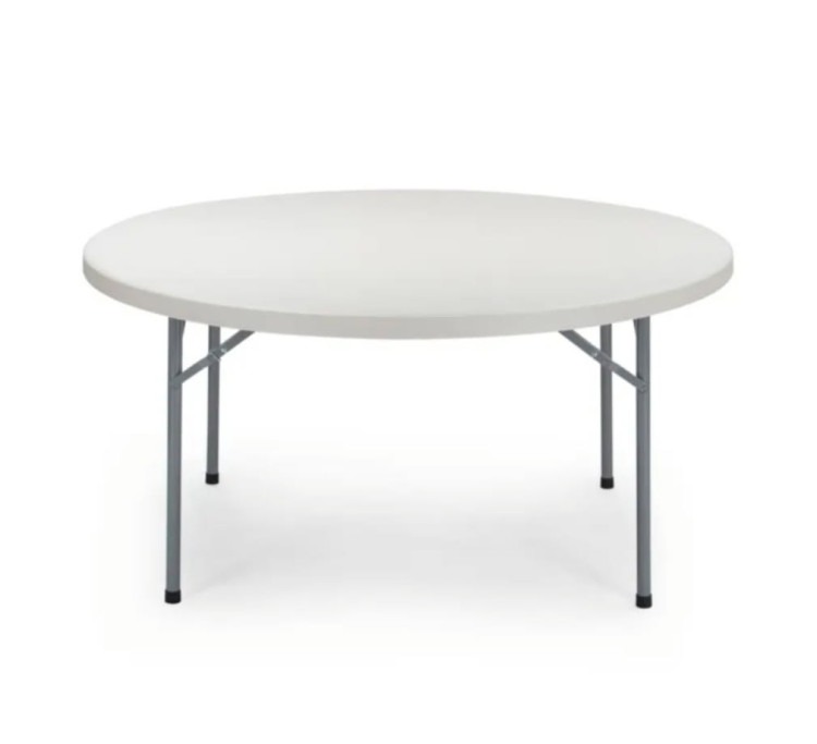 Round, 60-inch (5-foot) tables that provide a comfortable, casual setting for dining, games, or conversation. Each table seats about six people and works well for receptions, parties, conferences, or backyard events. Sturdy and easy to arrange, these tables create an inviting centerpiece for food, decorations, or activity stations. Simple to set up and pair with chairs, they’re a practical choice for both indoor and outdoor rentals.