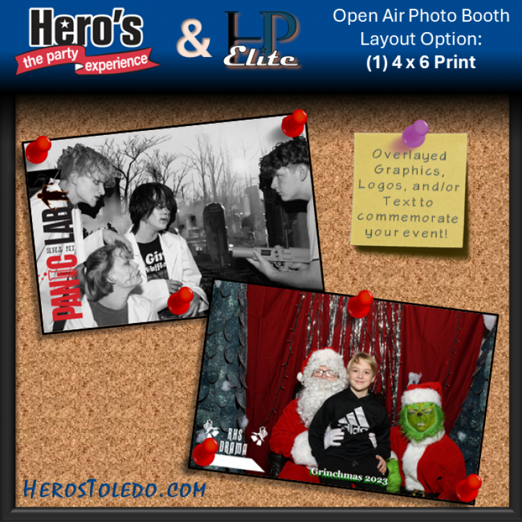 (1) 4 x 6 PrintPhoto Booth:(1) 4 x 6 Print1 Contact us with questions surrounding graphics and text overlays!
