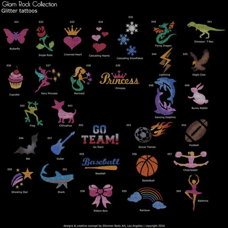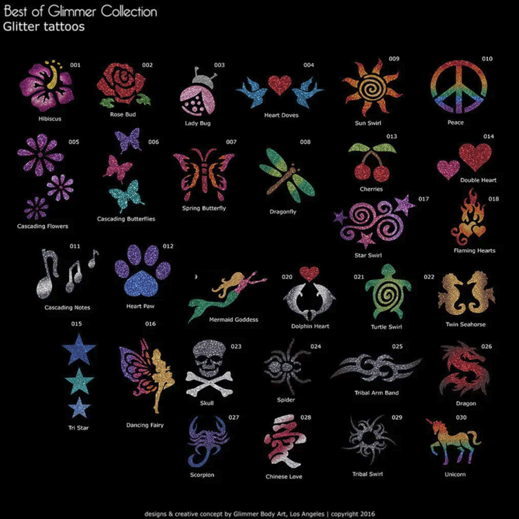 Best of GlimmerGlitter Temporary Tattoos:Best of Glimmer1Dropdown01839919_25950910000 Add The Best of Glimmer Stencil Set. Includes 30 of our most popular designs. Great for an all ages event