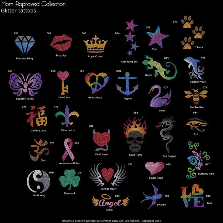 Best of GlimmerGlitter Temporary Tattoos:Best of Glimmer101839919_2595107_25950910100 The Best of Glimmer Stencil Set includes 30 of our most popular designs. Great for an all ages event and diverse crowds!