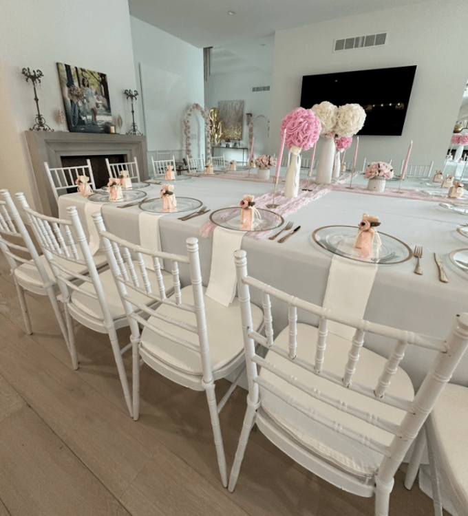 Designed for both style and practicality, these chairs are lightweight yet durable, ensuring easy transportation and setup without sacrificing quality. Their classic design complements any décor theme, from traditional weddings to modern soirées, offering a versatile option for party rentals near me.