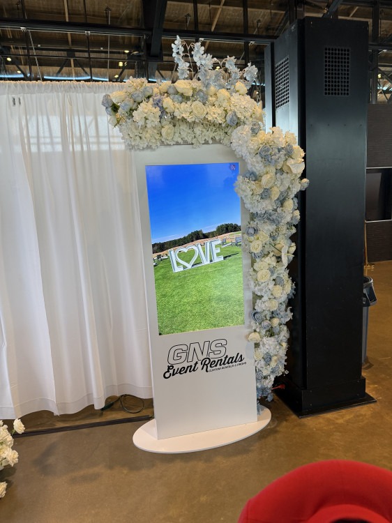 The Digital Display rental is your go-to for vibrant and engaging visual presentations. Whether it's for a trade show, conference, or special event, this high-tech screen ensures crystal-clear graphics and stunning colors that captivate any audience. Set it up to showcase your content, announcements, or branding effectively, and leave a lasting impression on everyone who lays eyes on it. Perfect for delivering information with impact! We can upload your own media or you can have our GNS Team design your media for an additional fee!