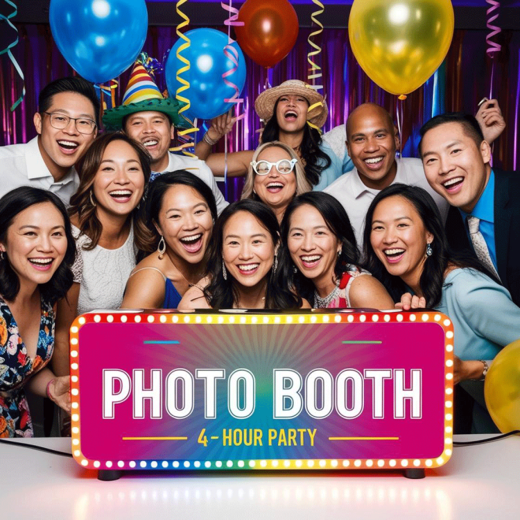 For full evening events, our four hour photo booth rental provides non stop fun. Includes a friendly attendant, themed props, instant prints, and a digital gallery. Great for larger events and corporate functions.
