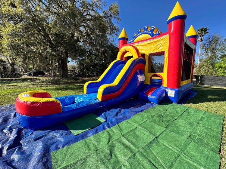 - OCCUPANCY: A maximum of 5-6 kids of equal size at one time for bounce houses, and 1 person at a time for slides is what most inflatable manufacturers recommend.