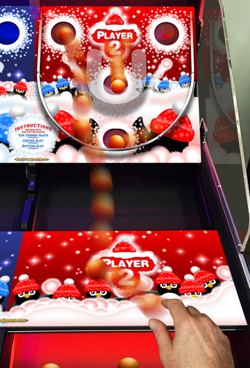 Perfect for all ages and events, the interactive Bounce-A-Ball game combines skill and fun as players aim to bounce balls off the bounce pad into one of four different slots. The player who collects the total needed points first will be the winner!