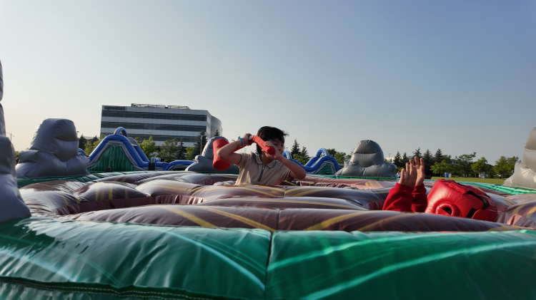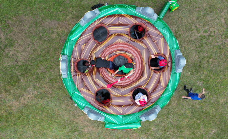 With Human Whack-A-Mole, we have added a hilarious and engaging twist on the classic arcade game whack-a-mole. Get ready for some oversized fun as participants take turns being the "moles" while others try to "whack" them with inflatable mallets! The 'moles' put on their head gear and try to dodge the blows of the hammer while attempting to snack as many balls as possible.