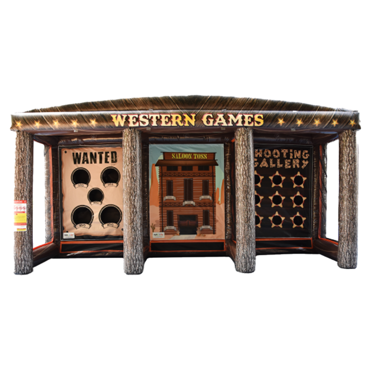 Yeehaw! Get ready to round up the fun with our Western Themed 3 in 1 Inflatable Game set. Featuring 3 fun games; Wanted Poster Toss, Saloon Toss (Axe Throwing) and the classic Shooting Gallery. Bring the Wild West to your next event with these entertaining games suitable for adults and kids alike.