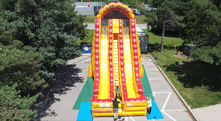 Climb up the centre ladder to the top of our dual lane Lava Rush slide that offers a steep, adrenaline-pumping descent that promises an exhilarating ride. Its smooth, reinforced slide surface ensures a fast and fun experience while maintaining safety.