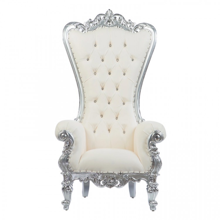 Padded Throne Chair White with Silver trim great for photos, Baby showers, prom send off's and for bride and groom chairs. Makes for and excellent king and queen chair set or a winter wonderland event.