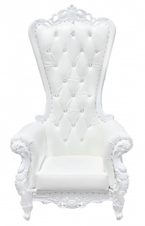 Padded Throne Chair White with white trim great for photos, Baby showers, prom send off's and for bride and groom chairs. Makes for and excellent king and queen chair set or a winter wonderland event.