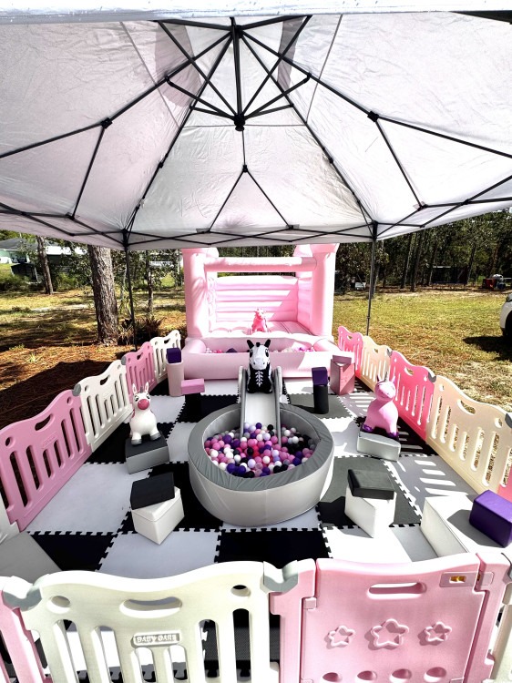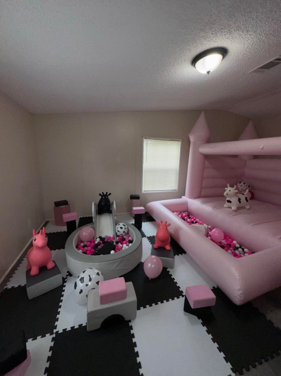 - OCCUPANCY: A maximum of 5-6 kids of equal size at one time for bounce houses, and 1 person at a time for slides is what most inflatable manufacturers recommend.